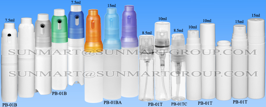 - PB-01T PET bottles(injection+blowing) + Spray Pump dosage: 0.075ml,0.10ml snap-on version + PP dustcaps